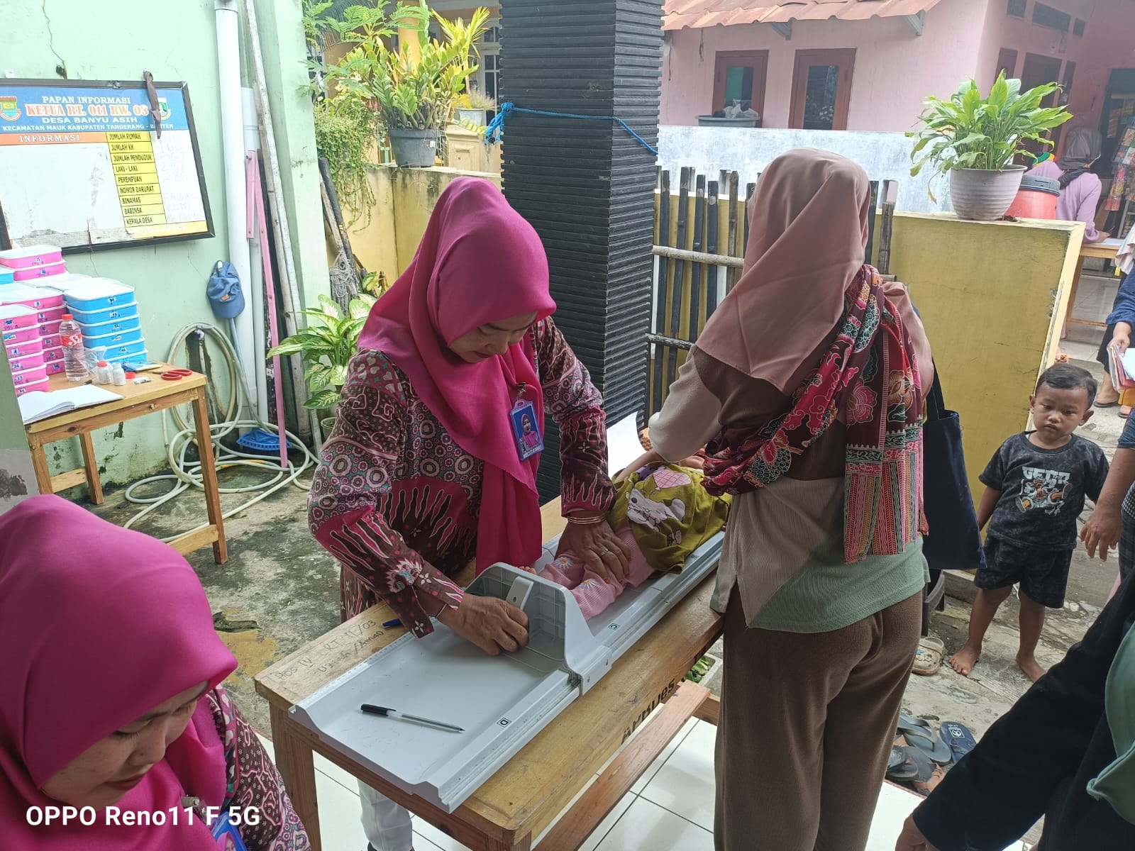 Pelaksanaan Posyandu di Desa Banyu Asih yang didampingi oleh Kader Posyandu dan Tim Puskesmas Mauk. Seperti biasa posyandu Balita dimulai jm 8 pagi. Pertama dilakukan Penimbangan Berat Badan dan pengukuran tinggi badan oleh kader posyandu serta yang kemudian langsung dicatat dibuku KIA (Buku pink) Balita dan pemberian Kapsul Vitamin A dan obat cacing yang diberikan setiap bulan Februari dan Agustus. Ada 2 jenis Vitamin A, Kapsul berwarna biru untuk anak usia 6 sampai 11 bulan dan kapsul berwarna merah untuk anak usia 12 sampai dengan 59 bulan. Pemberian Vitamin A ini untuk Meningkatkan daya tahan tubuh terhadap penyakit dan infeksi seperti campak dan diare serta membantu proses penglihatan dalam adaptasi terang ke tempat yang gelap. Pemberian vitamin A perlu diiringi dengan pemberian obat cacing agar penyerapan zat gizi pada balita sempurna dan dapat meningkatkan status gizi masyarakat. Kecacingan pada anak akan menimbulkan masalah kesehatan yaitu kekurangan gizi yang bersifat kronis yang akhirnya juga dapat meningkatkan risiko kematian pada balita. Terakhir Pemberian Makanan Tambahan (PMT) yang sesuai dengan aspek gizi untuk balita.